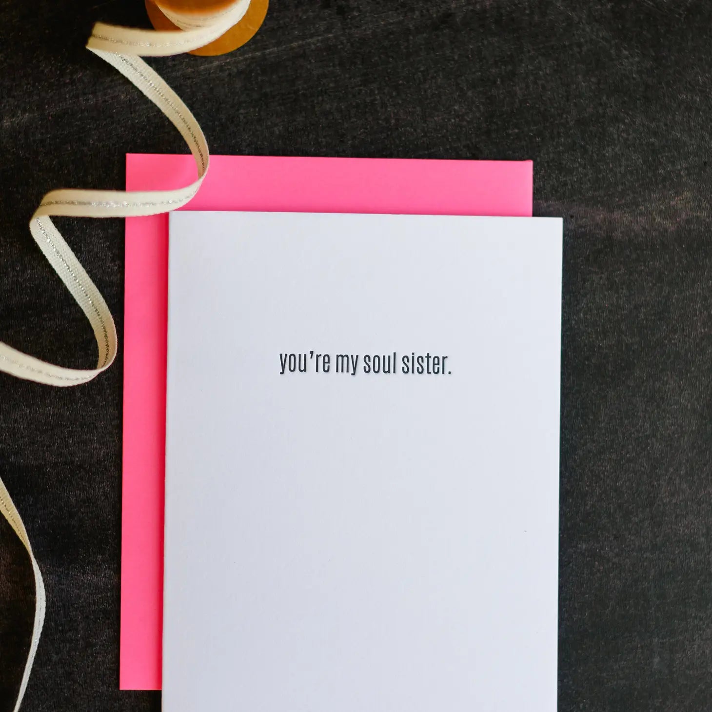 Our "You're My Soul Sister" card is letterpress printed on a vintage printing press.