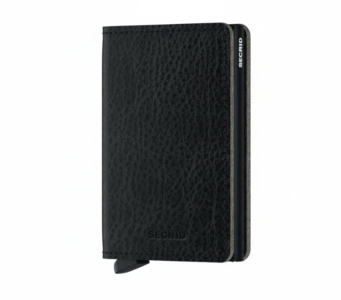Its slim profile makes the Slimwallet fit perfectly into every pocket. The open exterior is cut extra wide to hold cards, banknotes and receipts.