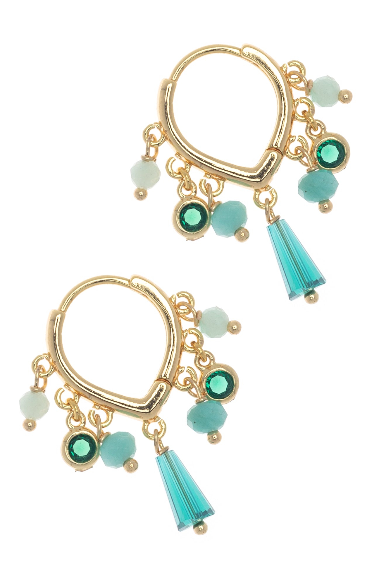 Add a splash of sparkle and a dash of fun with these huggie earrings featuring charming gemstone dangles. Perfectly sized to hug your earlobes, they bring just the right amount of shimmer to your look while dancing delightfully with every move. Whether you're dressing up or keeping it casual, these playful earrings are your new go-to for effortless style and a touch of gemstone magic.